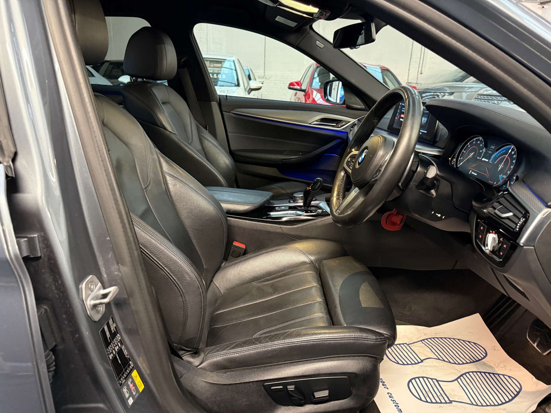 With only 2 previous owners, this BMW 5 Series is in impeccable condition and ready to elevate your driving experience. The Dakota Leather interior with Exclusive Stitching in Black-Blue adds a touch of elegance, while the BMW Gesture Control and Head-Up Display provide cutting-edge technology at your fingertips.