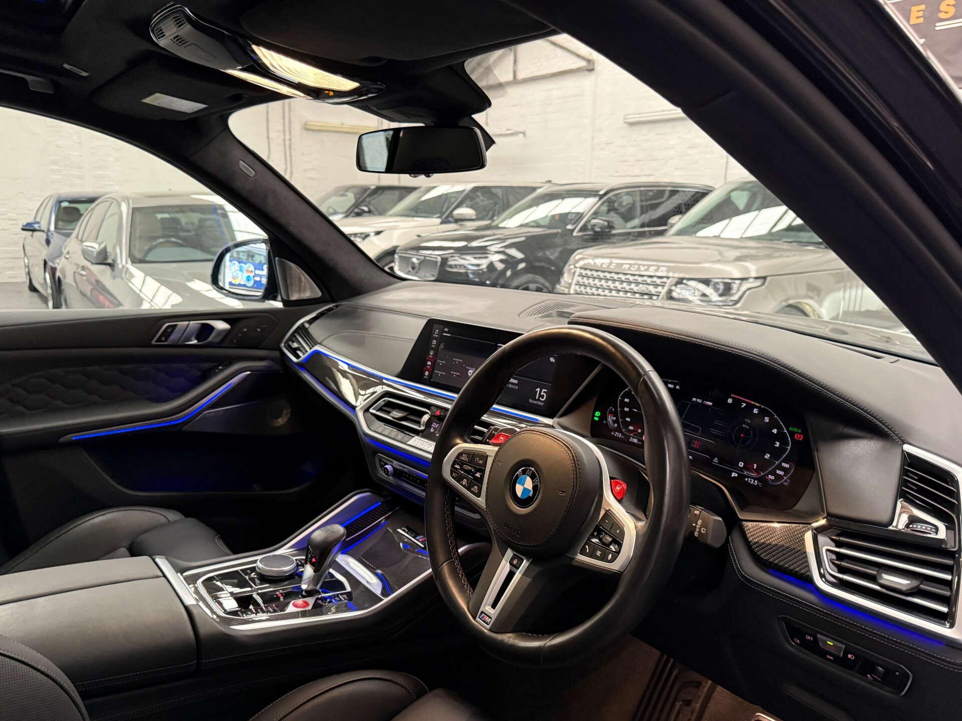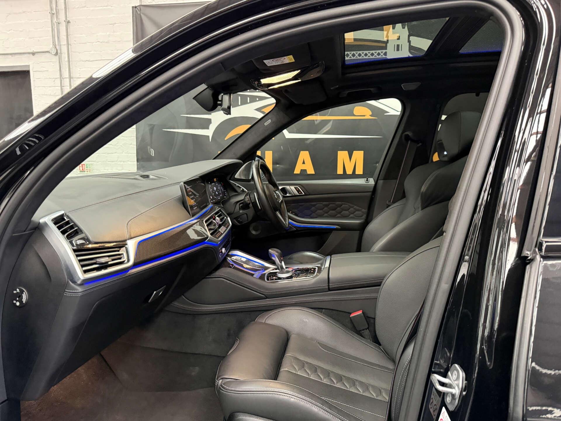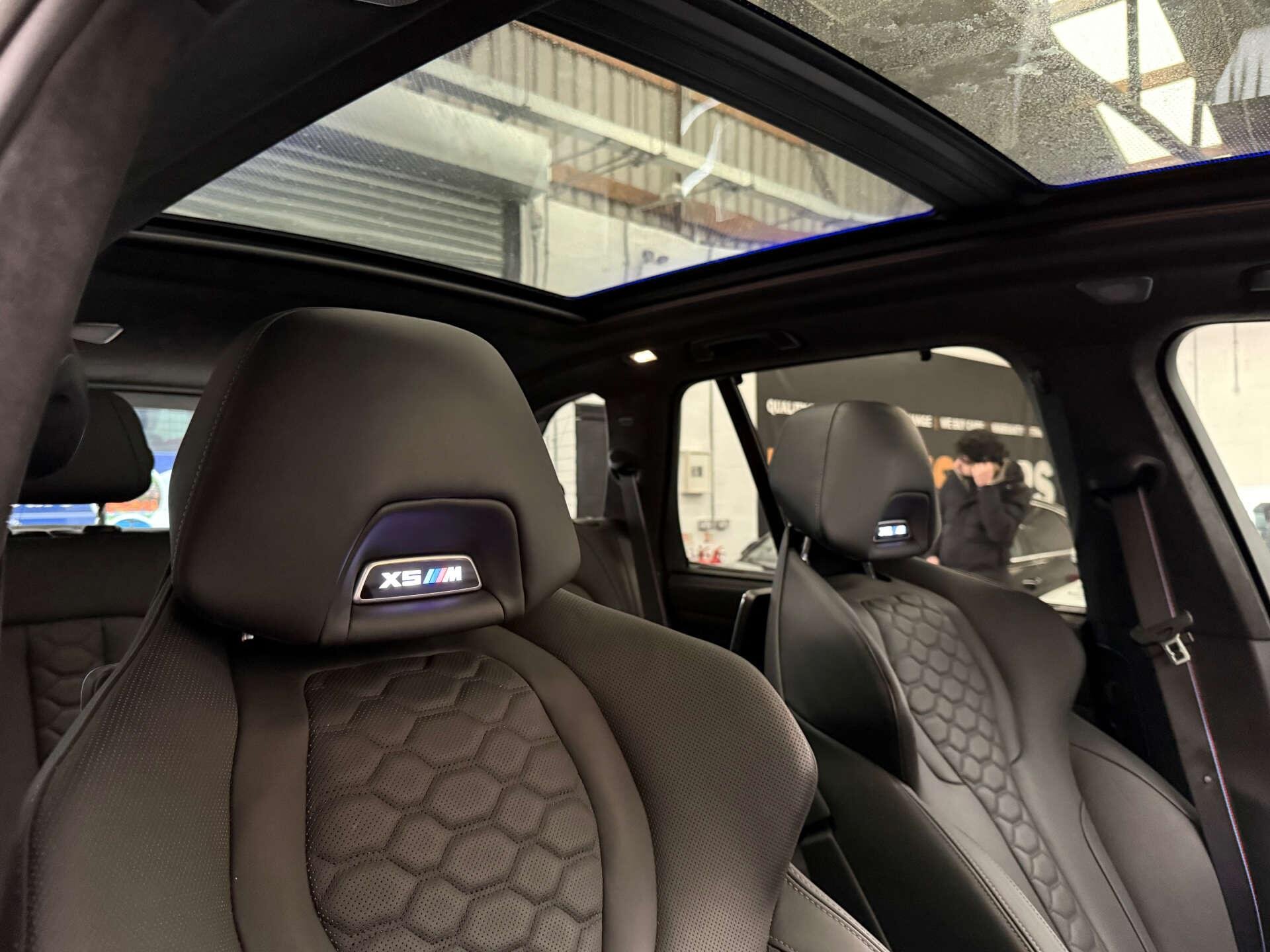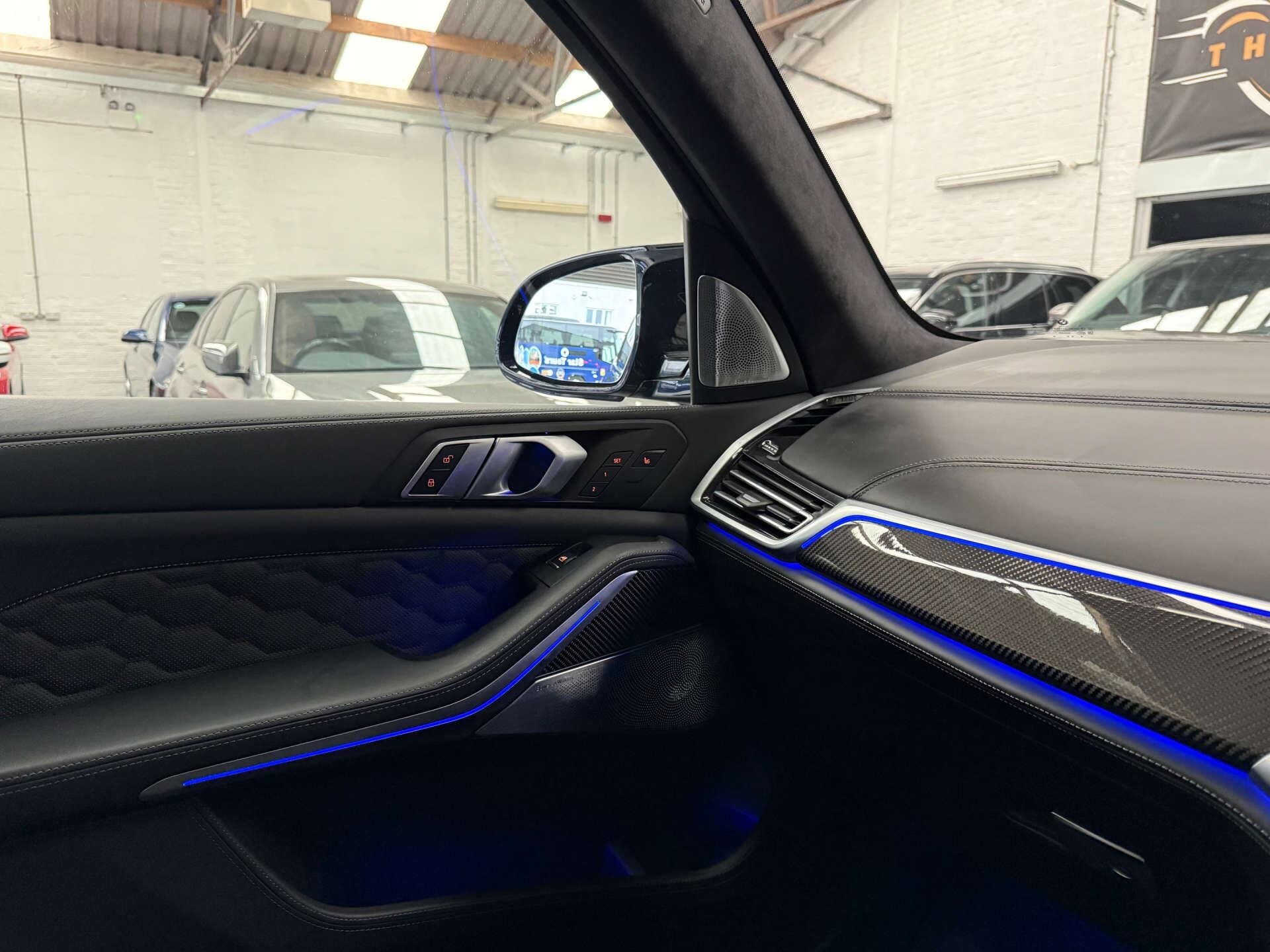 Step inside the cabin and experience the opulence of the Full Merino Leather in Black with Black Interior, complemented by the Interior Trim in Carbon Fibre. The M Carbon Engine Cover and M Carbon Side Mirror Caps add a touch of sporty elegance, while the Panorama Glass Roof Sky Lounge allows you to bask in the beauty of the sky above.