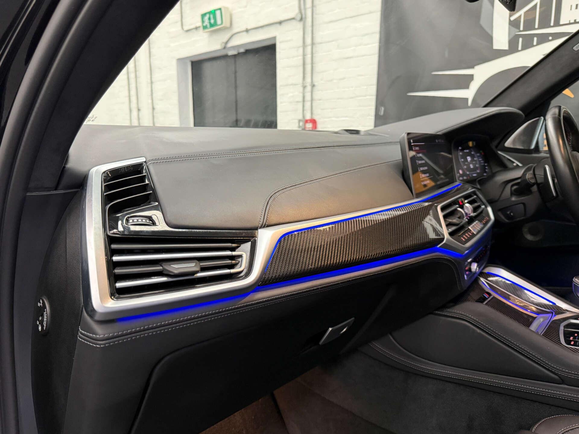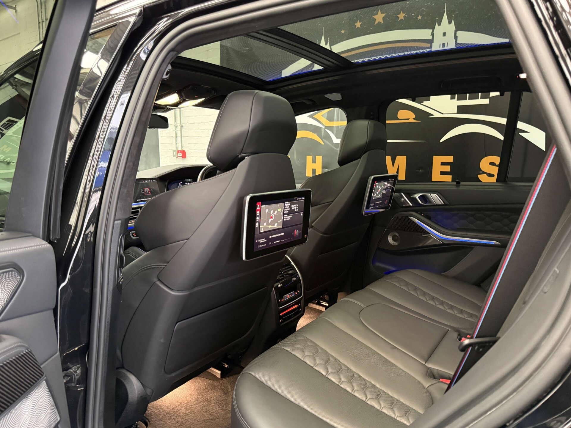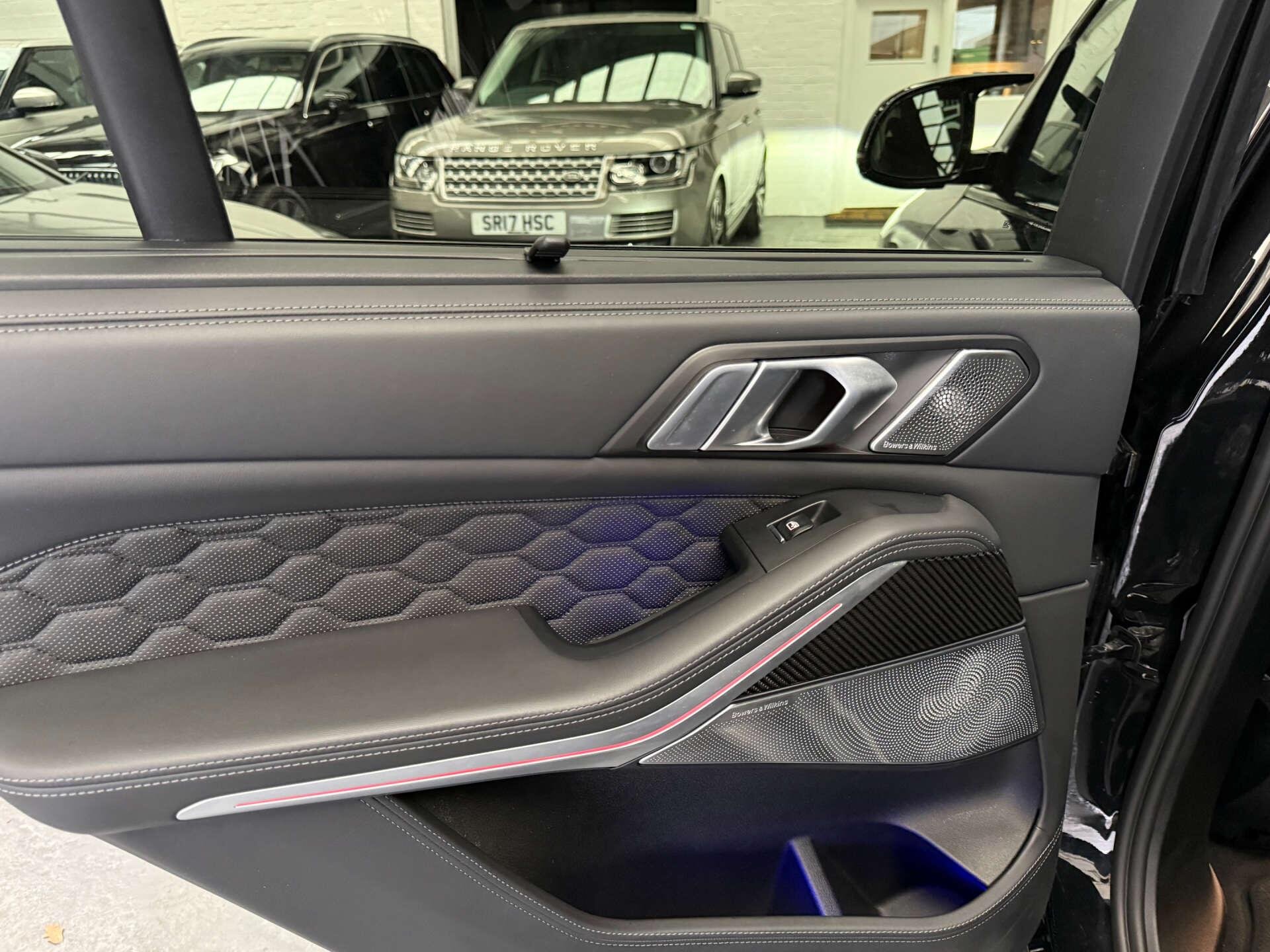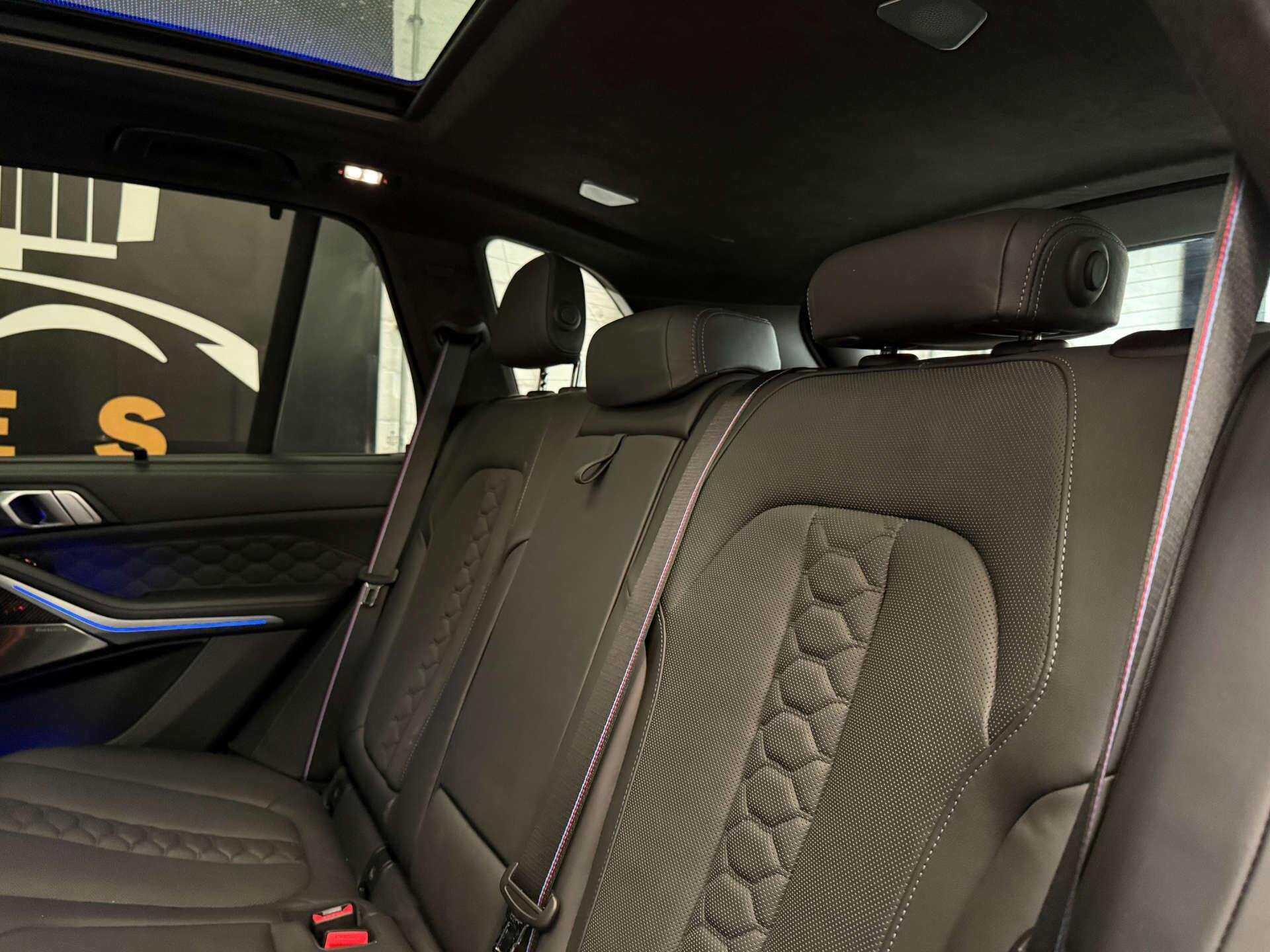 Step inside the cabin and experience the opulence of the Full Merino Leather in Black with Black Interior, complemented by the Interior Trim in Carbon Fibre. The M Carbon Engine Cover and M Carbon Side Mirror Caps add a touch of sporty elegance, while the Panorama Glass Roof Sky Lounge allows you to bask in the beauty of the sky above.