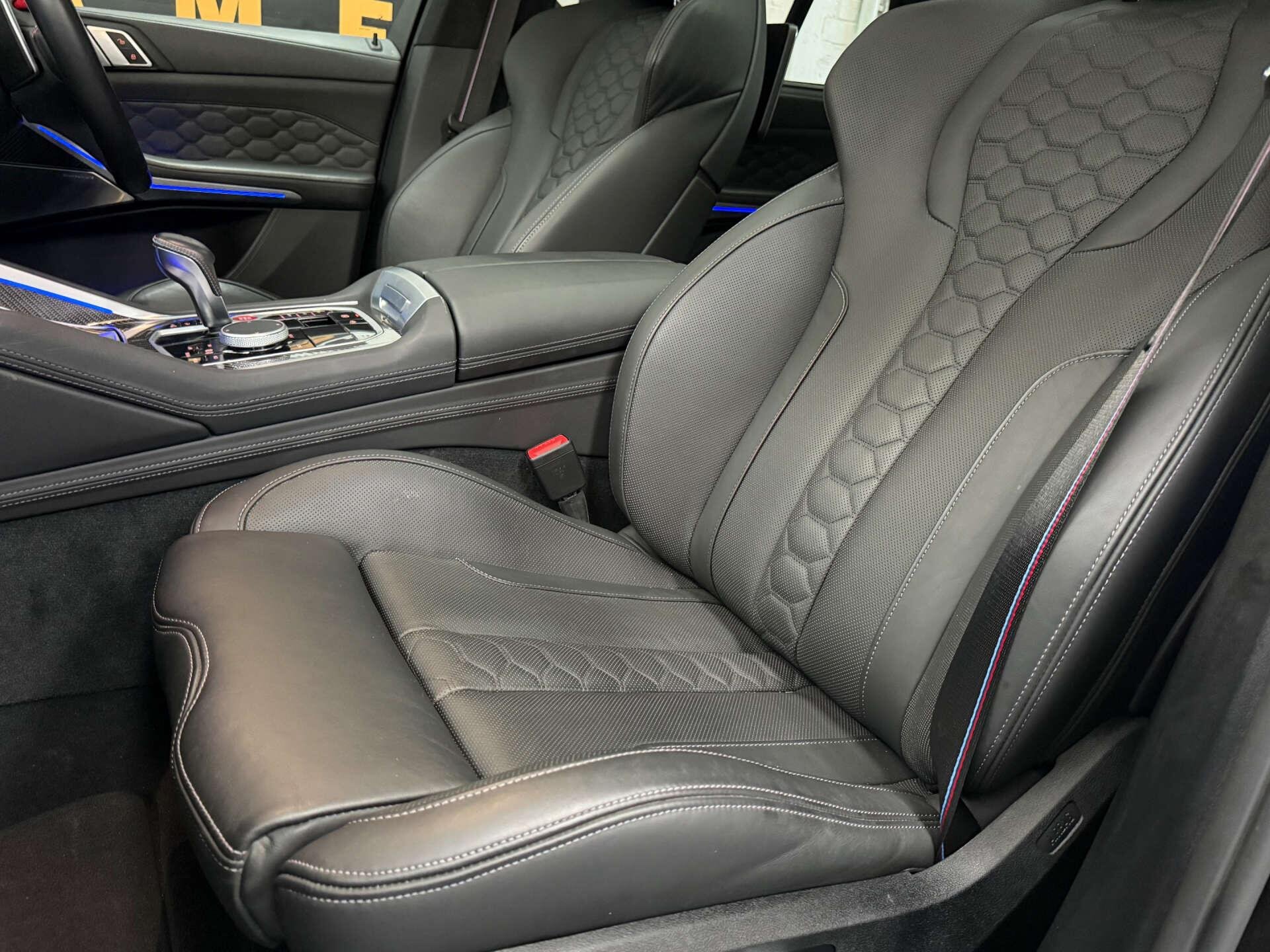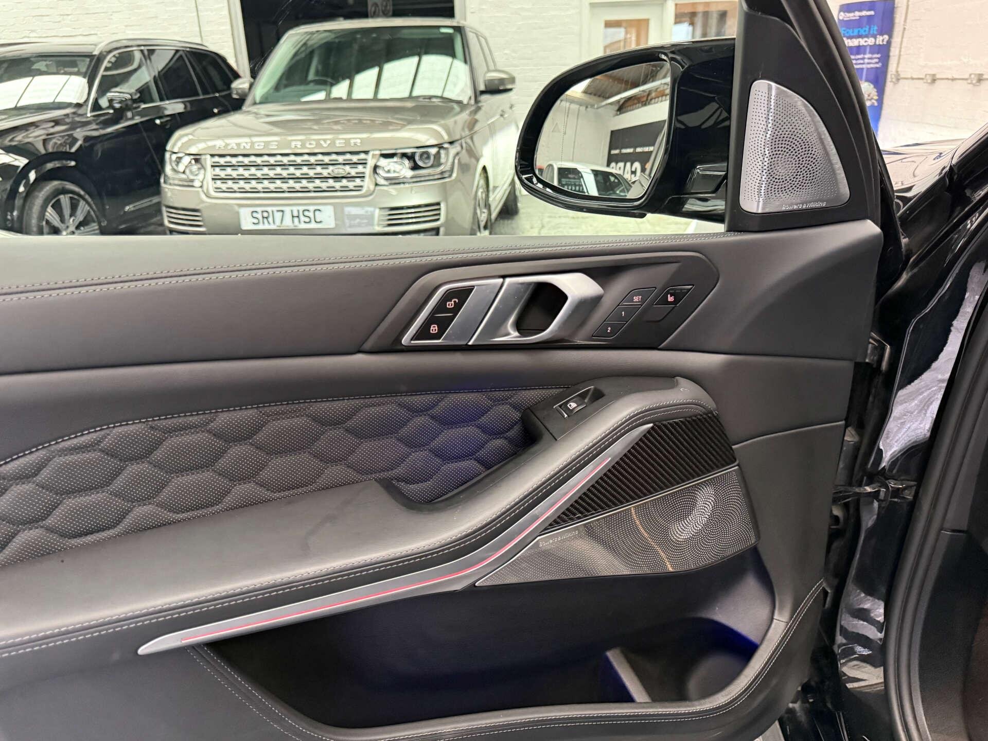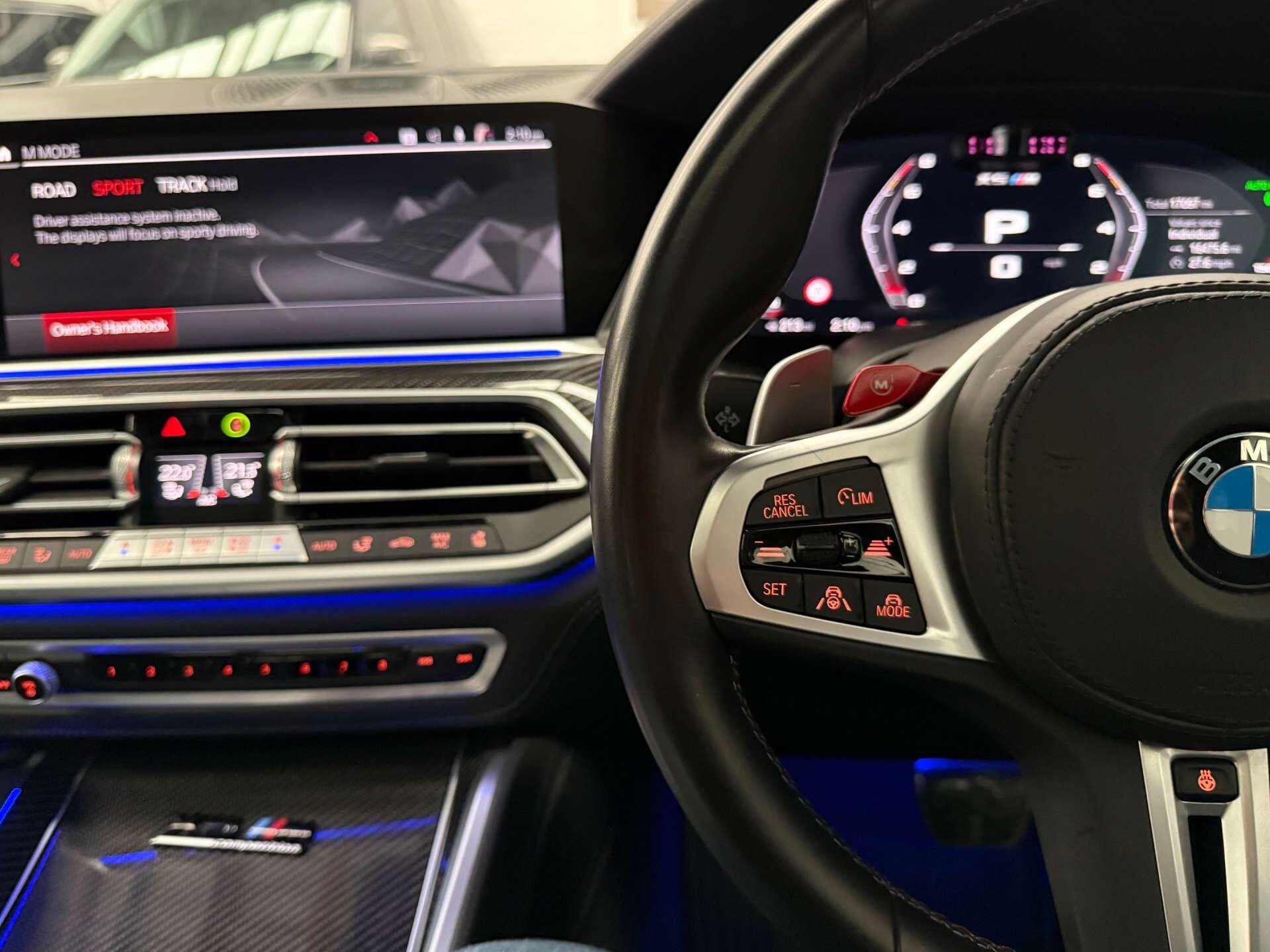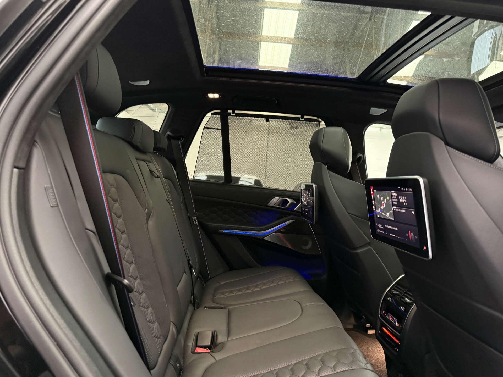 Step inside the cabin and experience the opulence of the Full Merino Leather in Black with Black Interior, complemented by the Interior Trim in Carbon Fibre. The M Carbon Engine Cover and M Carbon Side Mirror Caps add a touch of sporty elegance, while the Panorama Glass Roof Sky Lounge allows you to bask in the beauty of the sky above.