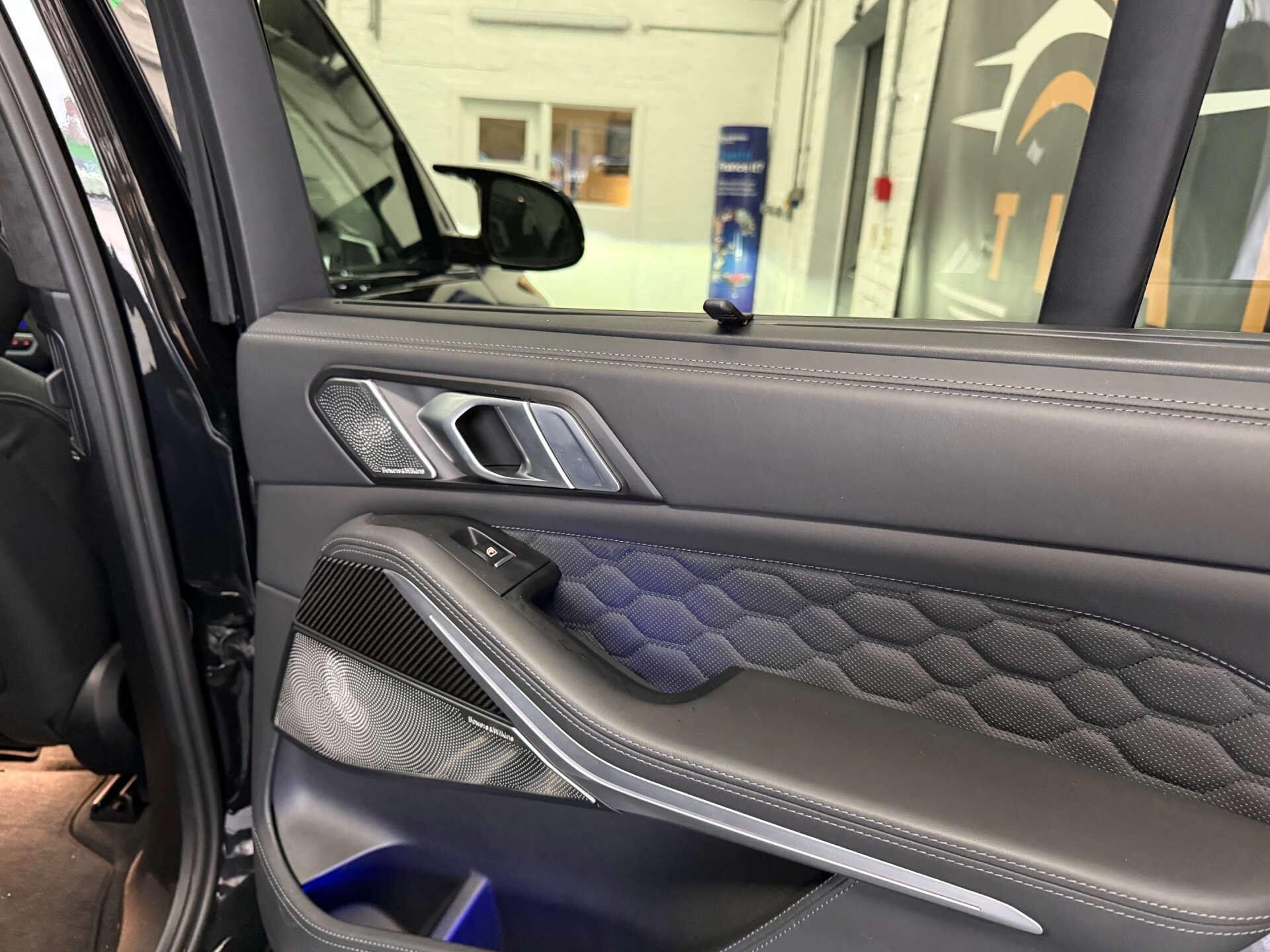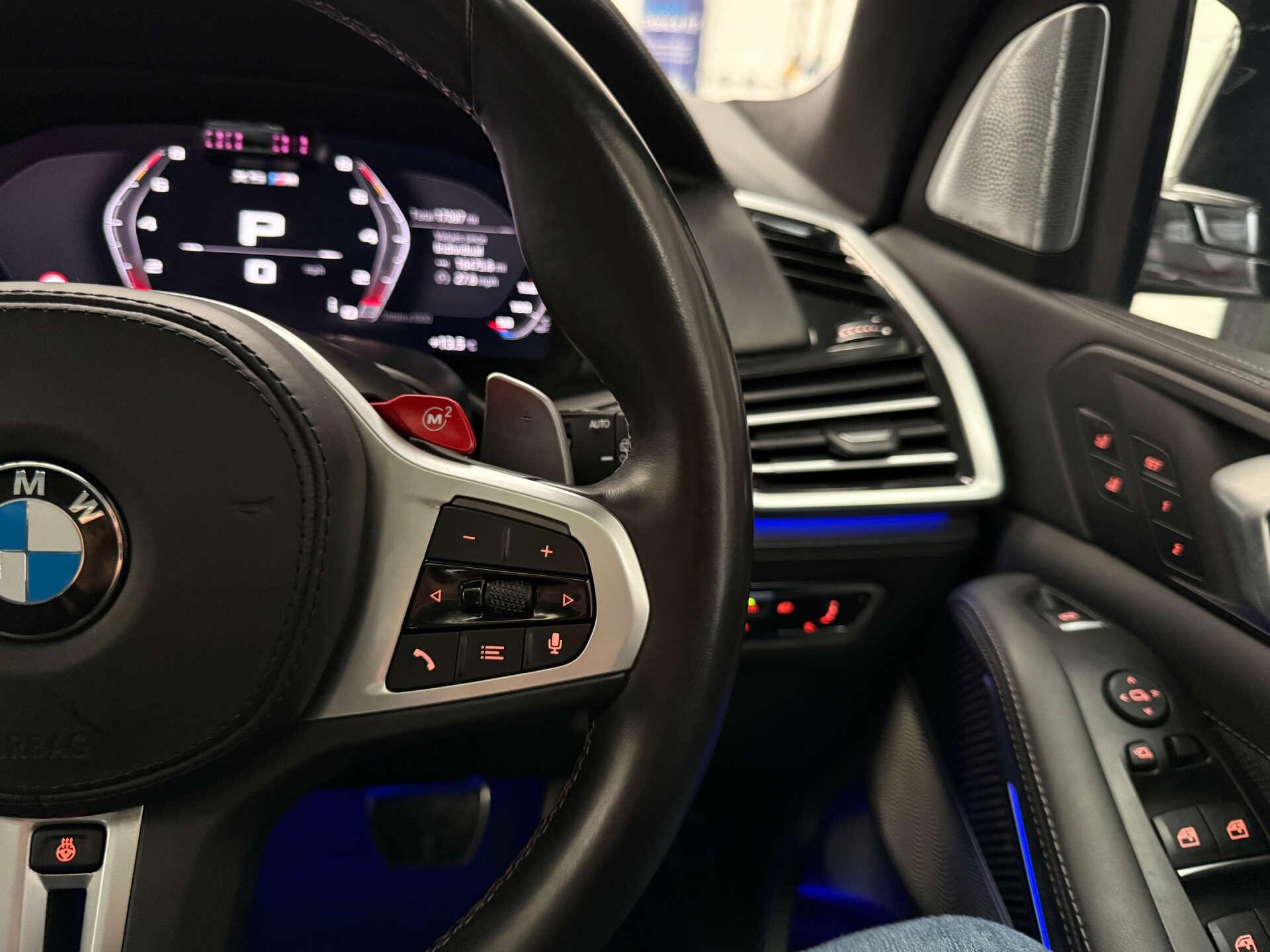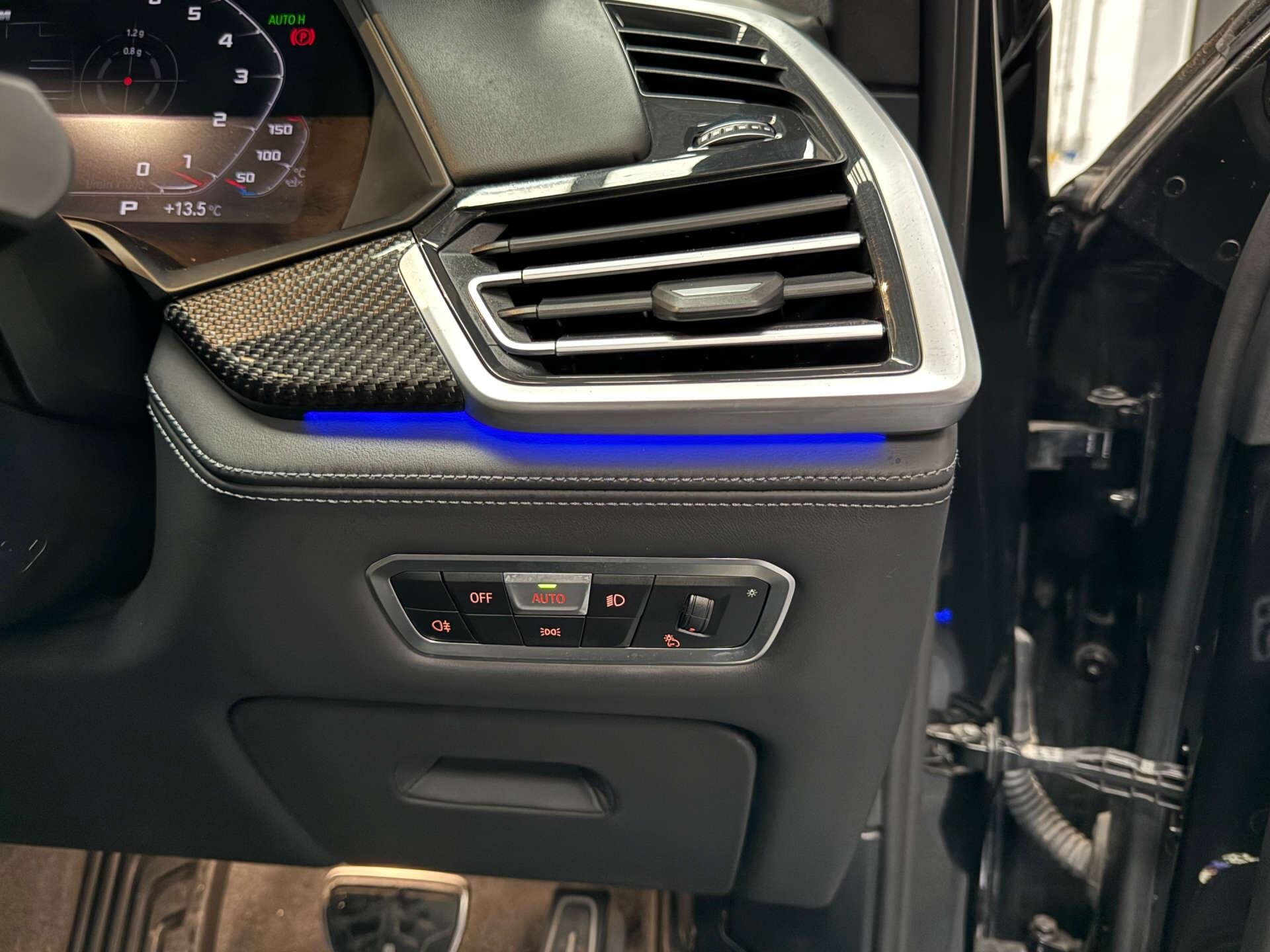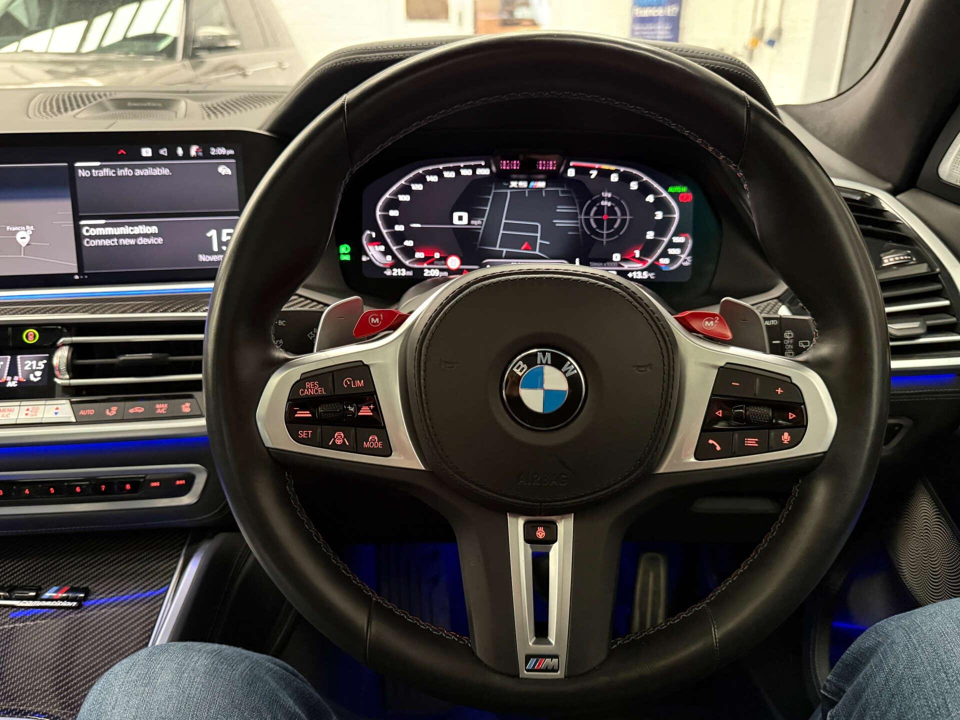 Step inside the cabin and experience the opulence of the Full Merino Leather in Black with Black Interior, complemented by the Interior Trim in Carbon Fibre. The M Carbon Engine Cover and M Carbon Side Mirror Caps add a touch of sporty elegance, while the Panorama Glass Roof Sky Lounge allows you to bask in the beauty of the sky above.