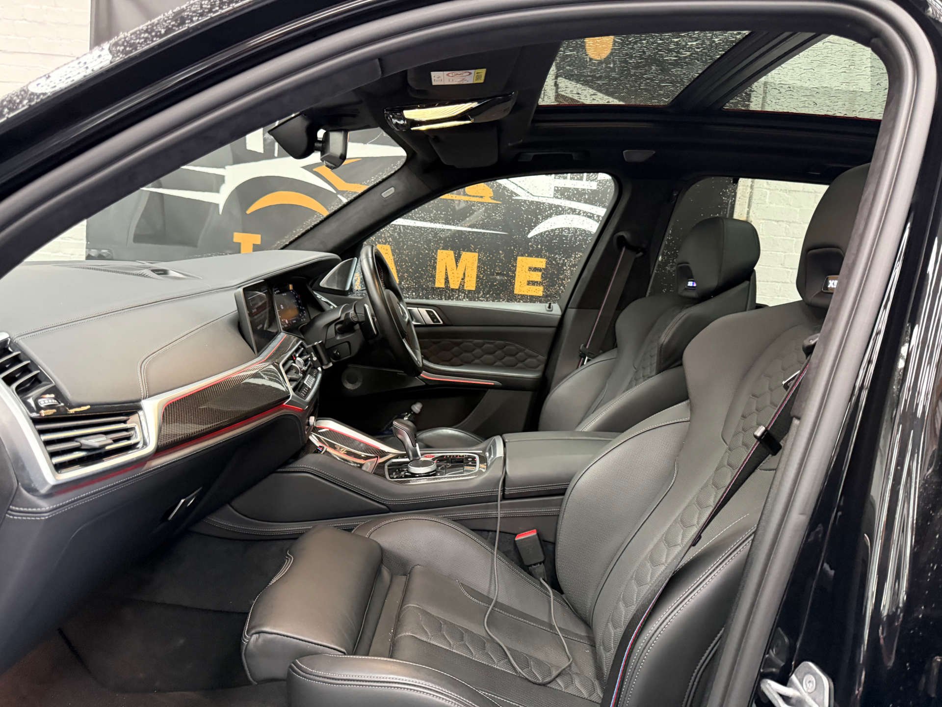 Step inside the cabin and experience the opulence of the Full Merino Leather in Black with Black Interior, complemented by the Interior Trim in Carbon Fibre. The M Carbon Engine Cover and M Carbon Side Mirror Caps add a touch of sporty elegance, while the Panorama Glass Roof Sky Lounge allows you to bask in the beauty of the sky above.