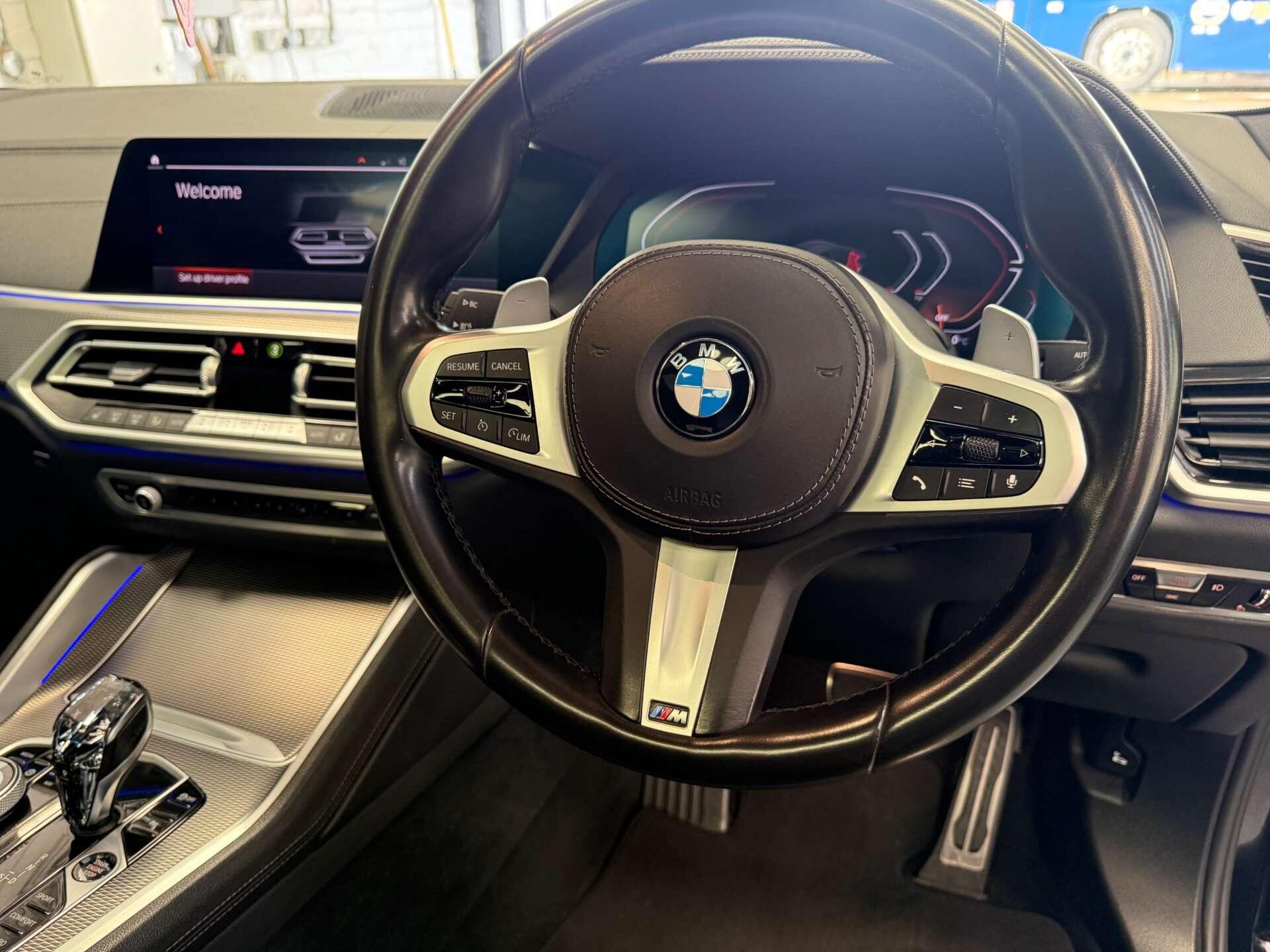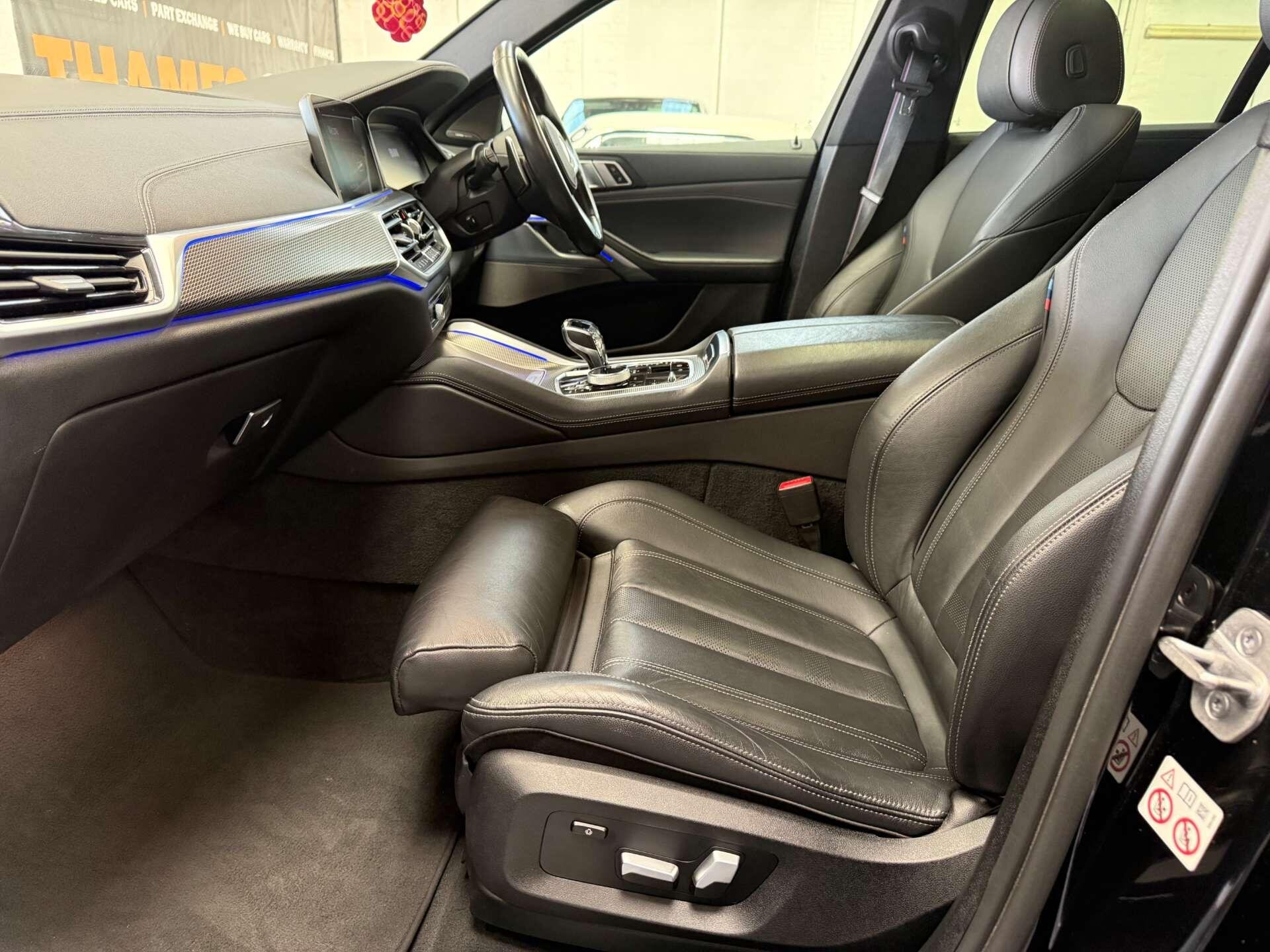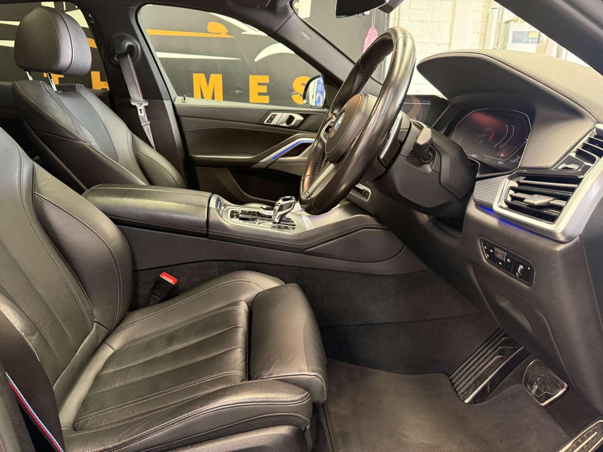 Further enhancing this X6 are desirable optional packs. The Panorama Glass Roof Sky Lounge, including a panoramic sunroof, creates an airy and open cabin atmosphere. The Technology Package features a Head Up Display, projecting key information directly into your line of sight, while the Visibility Pack equips the vehicle with advanced LED and Laser headlights for superior illumination. Practicality is also a strong point, with ample boot space for all your needs and a Parking Assistant system that includes a rear camera and rear sensors, making manoeuvring effortless.
