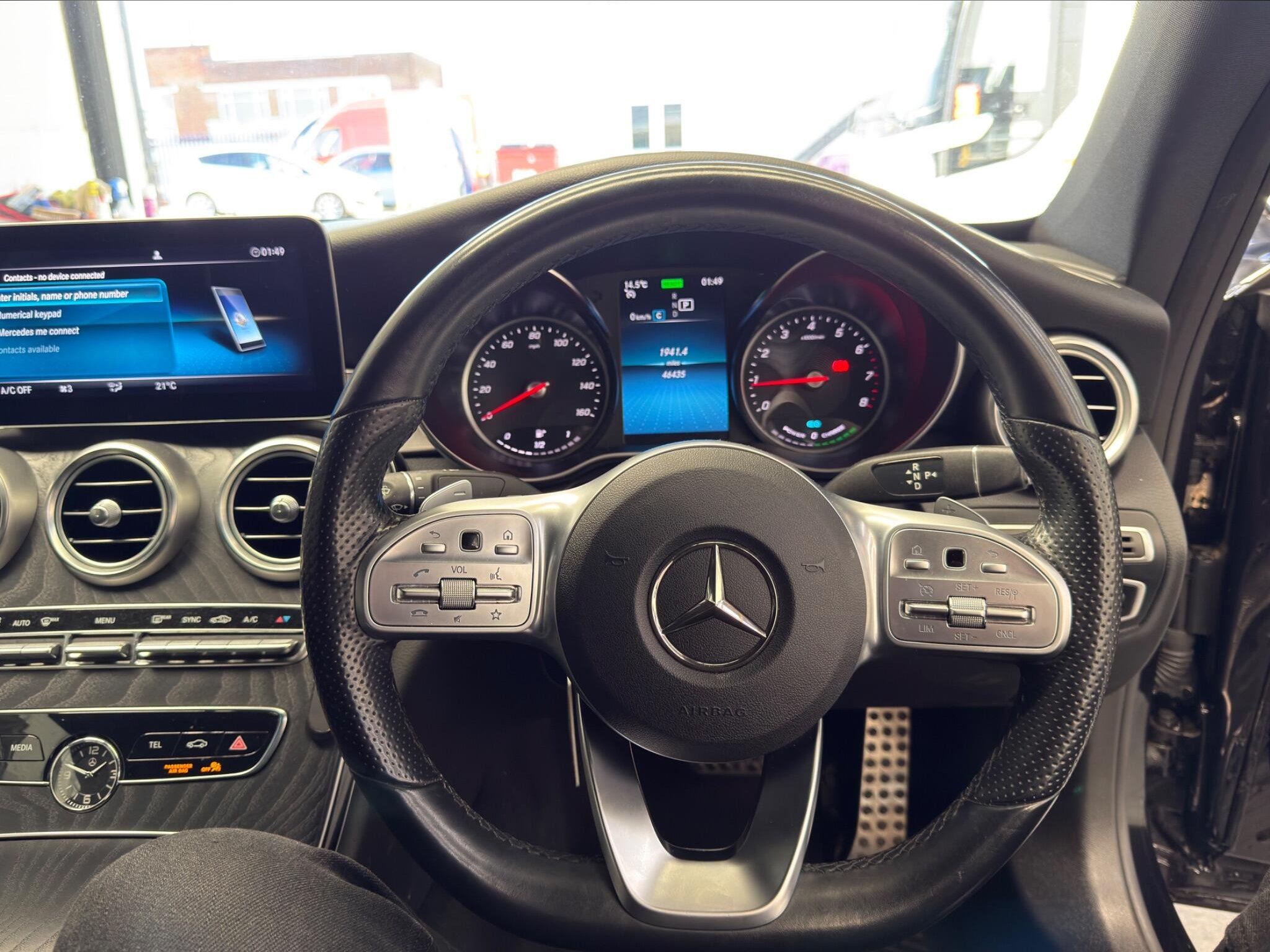 - Steering Wheel - 3-Spoke Multi-Function AMG in Leather with Flattened Bottom Section - Chrome Inserts and Perforated Leather in Grip Area